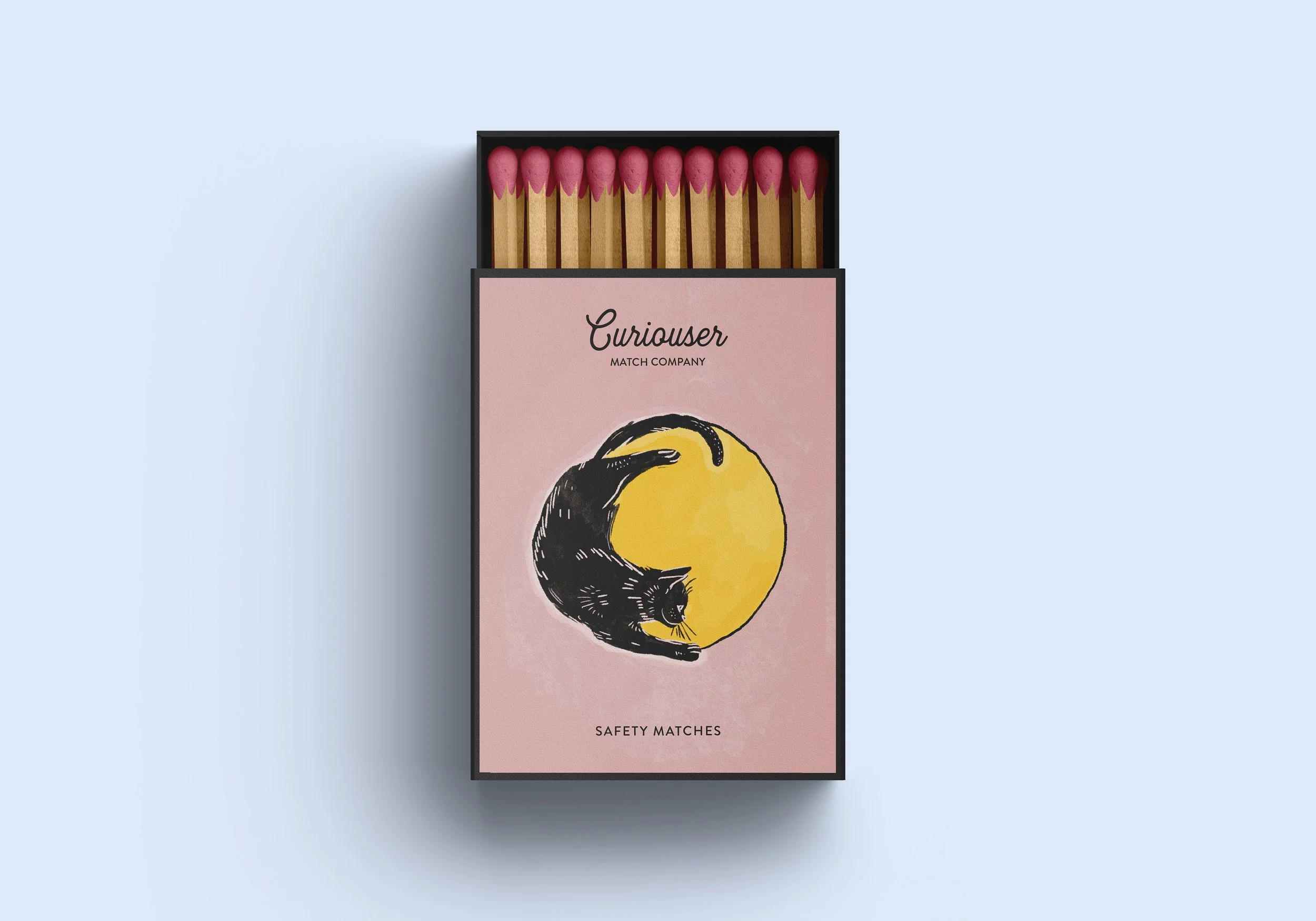 Curious Matchbox Co. is a whimsical matchbox brand bringing Alice in Wonderland characters to life in miniature form. The designs draw inspiration from the Victorian era’s inky illustration style, giving each box a storybook charm. Every character is framed within a shape that reflects their personality or narrative arc, turning each matchbox into a tiny visual metaphor.